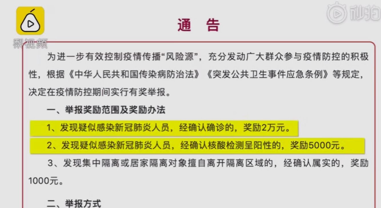 宁波举报疑似感染经确诊的奖励2万 网友:小心患病者互相举报