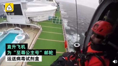直升机为至尊公主号空投试剂盒:船上21人出现感染症状,近百人需接受检测