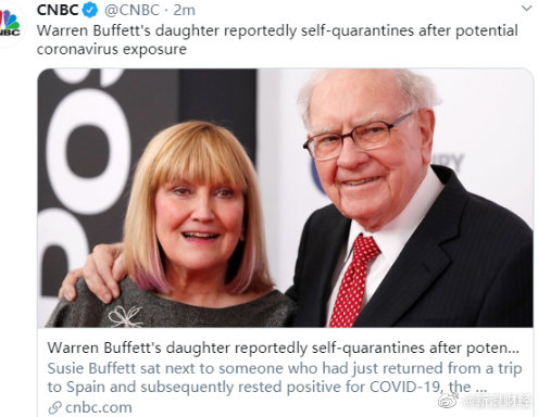 曾接触新冠病毒确诊者 巴菲特女儿正自我隔离中